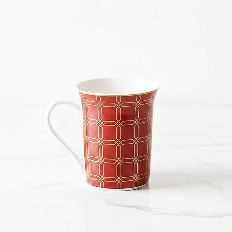 Make a bold statement at your next tea or coffee break with the Imperial Crimson & Gold Mug Set. This collection exudes confidence and luxury, featuring a deep scarlet red body accented by a sharp, interlocking gold lattice design. Crafted from the finest bone china, these mugs offer a striking contrast between the rich, warm tones and the brilliant white interior. It’s the perfect blend of royal tradition and modern geometric art.